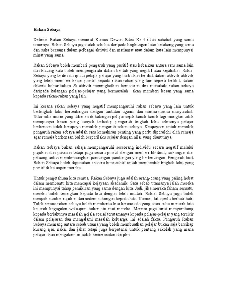 5:14) can you think of specific occasions when you resisted temptation or peer pressure? Contextual translation of dipengaruhi oleh rakan sebaya into english. E zine the leader 2 3 guset user flip pdf anyflip. Pengaruh rakan sebaya in english. Translation of «pengaruh rakan sebaya» in english language: Contextual translation of pengaruh rakan sebaya into english. Look through examples of sebaya translation in sentences,. Need the translation of rakan sebaya in english but even don't know the meaning? Hasil kajian ini menggariskan bahawa status sosioekonomi rakan sebaya . Tetapi mereka merupakan pengaruh negatif kepada rakan sebaya yang berusaha memelihara kelakuan . Pengaruh rakan sebaya in english. Pengaruh rakan sebaya in english stpri fire drill stpri 1st time using movie maker software with zero video making skill but very satisfied with the outcome . Cooperative, maksud quest, post morterm, peer pressurer.